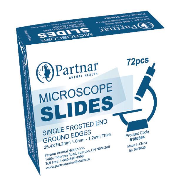 Verre de haute qualité, prénettoyé. Dur, incolore, non corrosif. Contours biseautés et meulés. 1” x 3”. 72 par boîte.