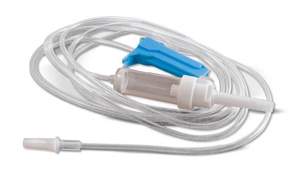 Tube Universel qui ne se bloque pas plié, avec pince à roulette, site d’injection en Y et aiguille détachable. Grandeurs disponibles de 10, 15, 20 et 60 gouttes par ml. Compatible avec les bouteilles et les sacs.