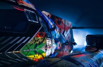 motiver i Julie Mehretus arbejde. Til designet af BMW Art Car #20 forvandlede hun først et todimensionelt billede til et tredimensionelt udtryk. Julie Mehretu brugte farver og form fra sit monumentale maleri "Everywhen" (2021-2023) som udgangspunkt for designet.