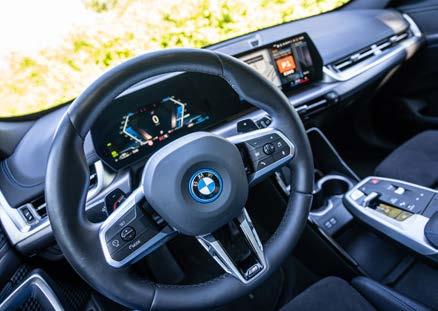 kæmpestort hul i taget, så man nærmest kører åbent, og det følger med i Plus-udgaven, der jo lige koster 55.000 mere end M Sport. For de ekstra penge får du også et glimrende headup-display, navigation og andre fælge samt ratvarme. Vognen vejer i øvrigt 1935 kilo og må trække 1800 kilo på krogen. Hvis du drømmer om en rap SUV, som faktisk også ser ganske skarp ud, er Bimmeren et fantastisk bud, men vi kommer ikke udenom, at prisen også er ganske frisk. Derfor må du ikke glemme, det du allerede ved, nemlig at der er et noget billigere alternativ, hvis altså du tør tage springet til ren el i stedet for denne pottetræningsbil af en pluginhybrid. Vi taler selvfølgelig om den helt elektriske version kaldet iX1, der som nævnt starter ved priser på 464.157 kroner – dén prisforskel kan ikke ignoreres.