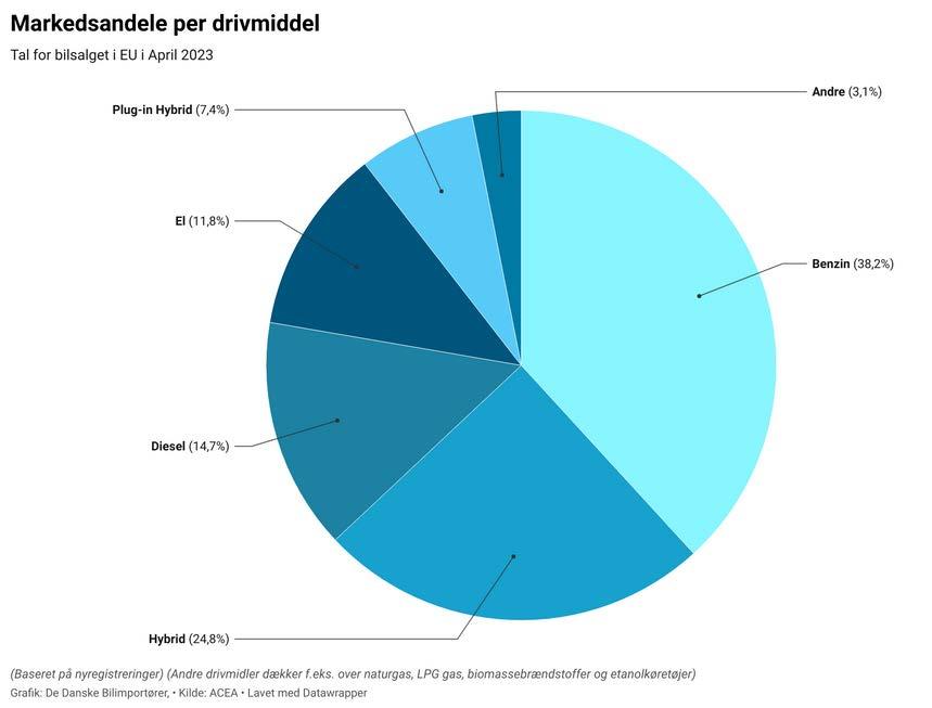 I april var der en markant fremgang til elbilerne, som øgede deres markedsandel fra 9,1 procent til 11,8 procent. Hybridbilerne har indtaget en solid andenplads med 24,8 procent af salget, mens førstepladsen stadig udgøres af benzinbilerne, der havde en markedsandel på 38,2 procent i april.