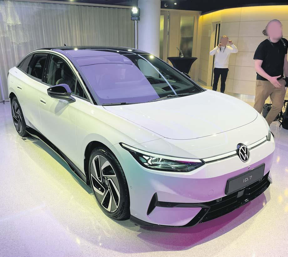Det er en helt almindelig mandag ved frokosttid, hvor den blege forårssol får Stockholms beboere til at titte hovedet frem efter en lang vinter. Vi er i Norrmalm-bydelen i Volkswagens Citystudie, og indenfor dunker bassen højt, mens DJ’en med gult hår spiller op. For tyskerne er det alt andet end en almindelig dag. Det vidner de to lettere kejtede marketingtyper om på storskærmen, der sender live direkte fra Berlin. Her har hele Volkswagens PR-hær stablet et show på benene, der kunne forveksles med et mellemstort dansk awardshow. Denne dag bliver der nemlig skrevet Volkswagen-historie, når den nye ID.7 bliver præsenteret. Det er den, vi er kommet for at se og røre, men dog ikke køre i.