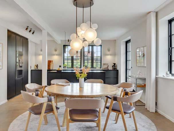 Spisestuen har fået ekstra plads omkring sig nu, hvor køkkenet er rykket ud for sig selv i mellemgangen.