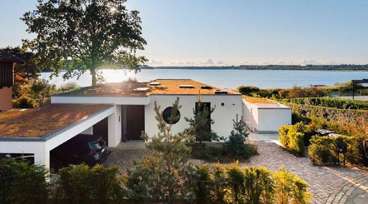 om at slappe af med at bade, sejle og surfe i søen. Selve huset på 237 m2 på den 1485 m2 store grund er nybygget i 2022 og arkitekttegnet til at passe perfekt til grunden og solens vandring. Det er miljøvenligt, med blandt andet jordvarme. Huset er opført med nøje udvalgte og meget smukke materialer. Der er tænkt både design, atmosfære og bekvemmelighed ind alle steder. Eksempelvis er der både indbygget gulvvarme og airconditioning. Der er luftcirkulation i alle rum, og både lys og musik i hele huset styres fra mobilen, mens man kigger til pejsens flammer fra spisebordet eller sofaen. Udenfor er der både infinity pool, bade- og saunaområde.