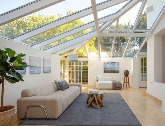 hvilket skaber en sjælden følelse af luft og åbenhed. Materialerne er i topklasse med røget egetrægulve fra Hakwood, snedkerløsninger fra Copenhagen Woodwork samt et skræddersyet køkken med Silestone-bordplader og hvidevarer fra Gaggenau og Miele. Grunden på 835 m² ligger ugeneret for enden af en stille vej med en sydvendt terrasse, hvor solen kan nydes fra morgen til aften.