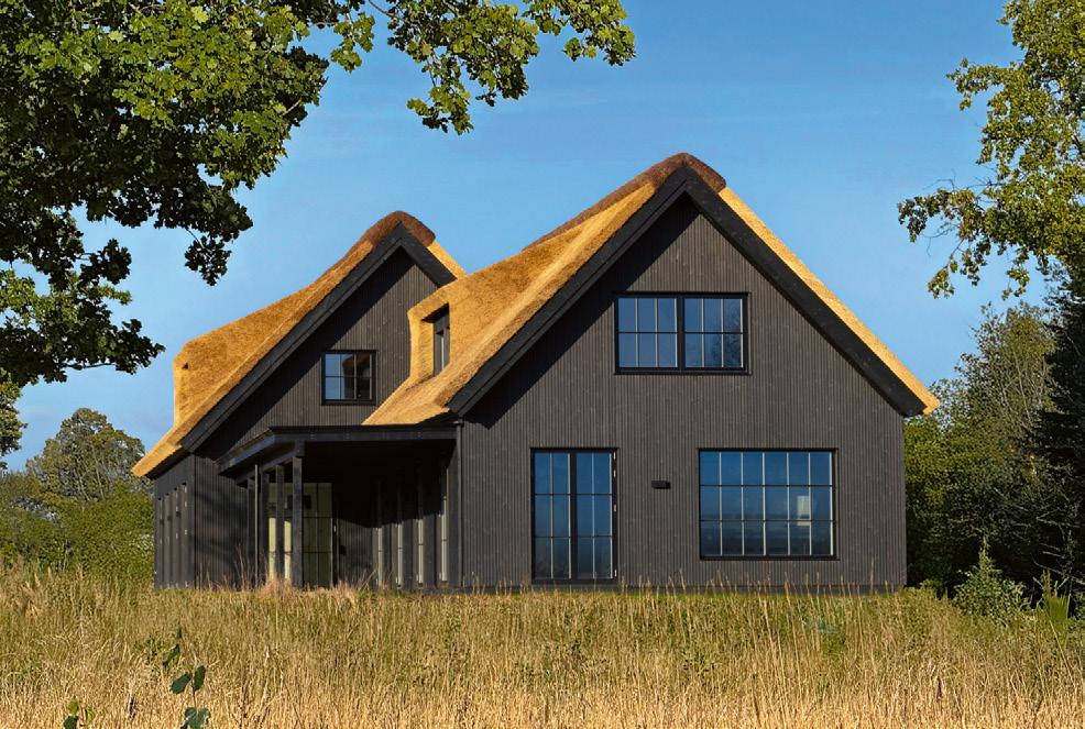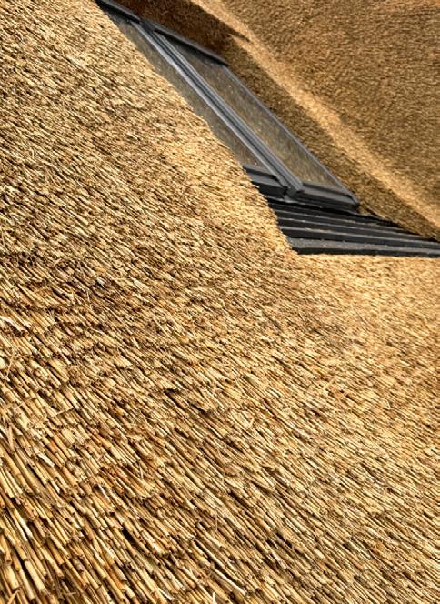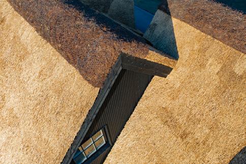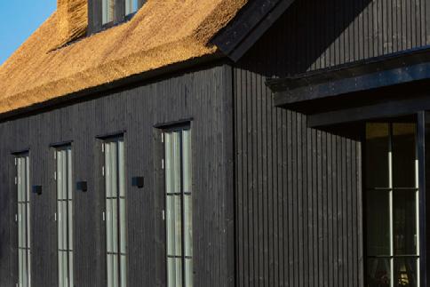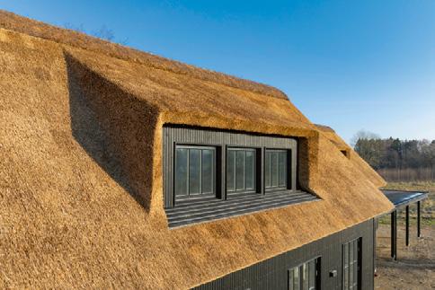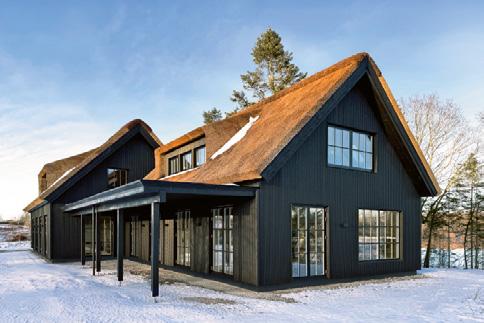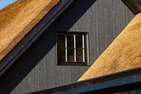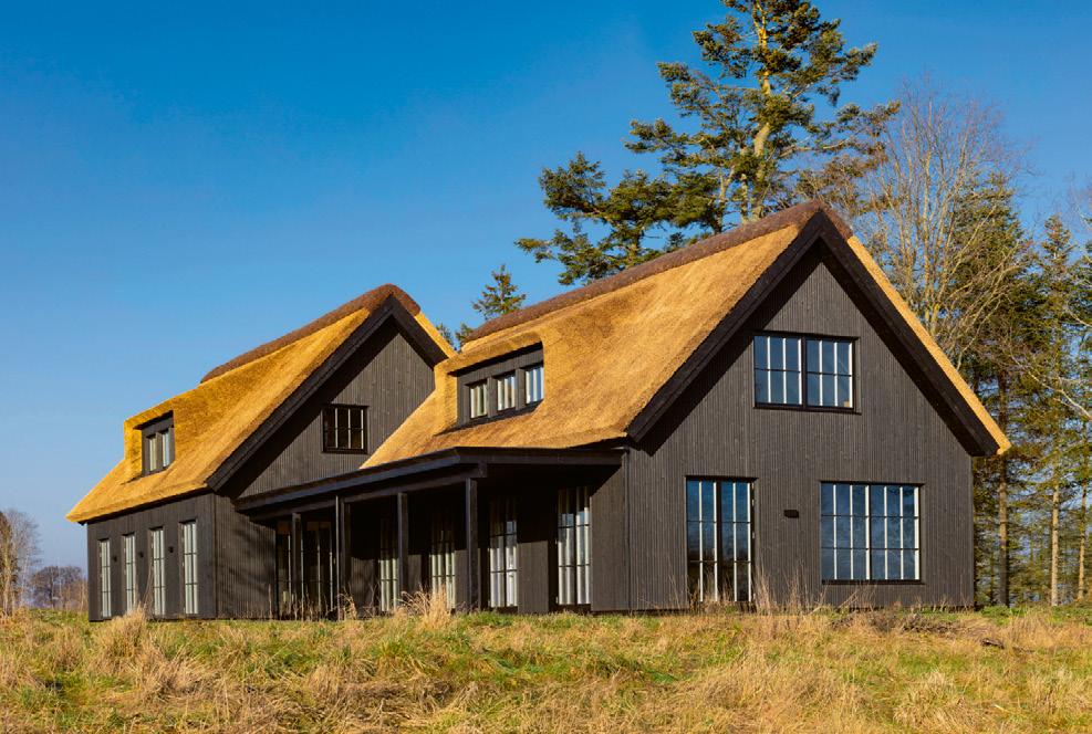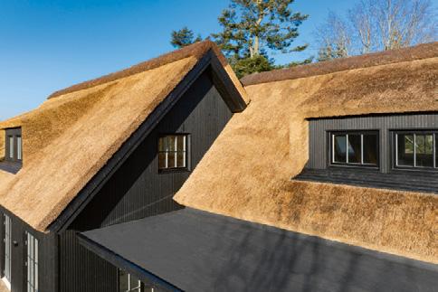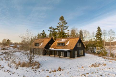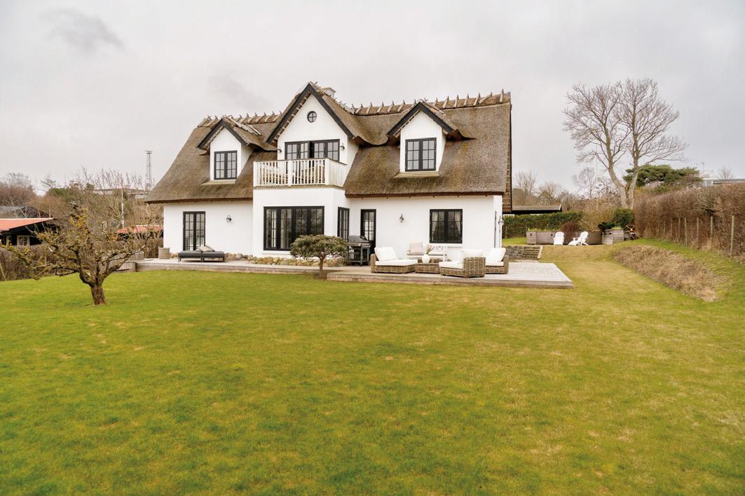 De stråtækte huse på matriklen er så nye som fra 2021, og de står i 4 række til skrænten mod havet med en af de bedste sand- og badestrande på Sjælland Så charmerende er de, så lækre er de indrettet, og så inspirerende er de at være en del af Med 205 m2 er der masser af plads til bør nefamilien med venner på besøg Der er spa og masser af sol på terrassen, og der er havgus og salt på læber ne, når vandet i Kattegat og guder ne mellem himmel og jord viser tænder