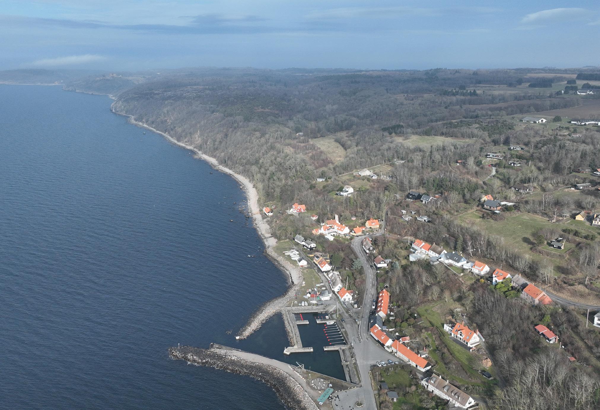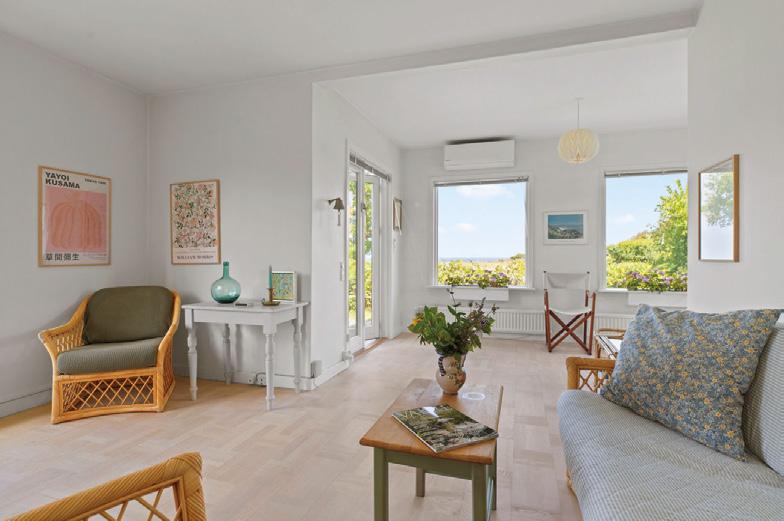 Smukt er det at gå der ned trin for trin, og dem er der et par stykker af, som havde Vor Herre designet dem alle sammen til den smukkeste tur til stranden Her på matrikler ne lå et tidligere badehotel, og det fine græsareal mod vandet er i dag fredet Her er sol hele dagen, her er stille og roligt, kun havets fugle kan følge med, når de flyver forbi Huset er på 110 m2 med flere soveværelser på en 1 340 m2 stor grund, så bør nefamilien får det rigtig godt her med brændeovn og luft-til-luft-varmepumpe