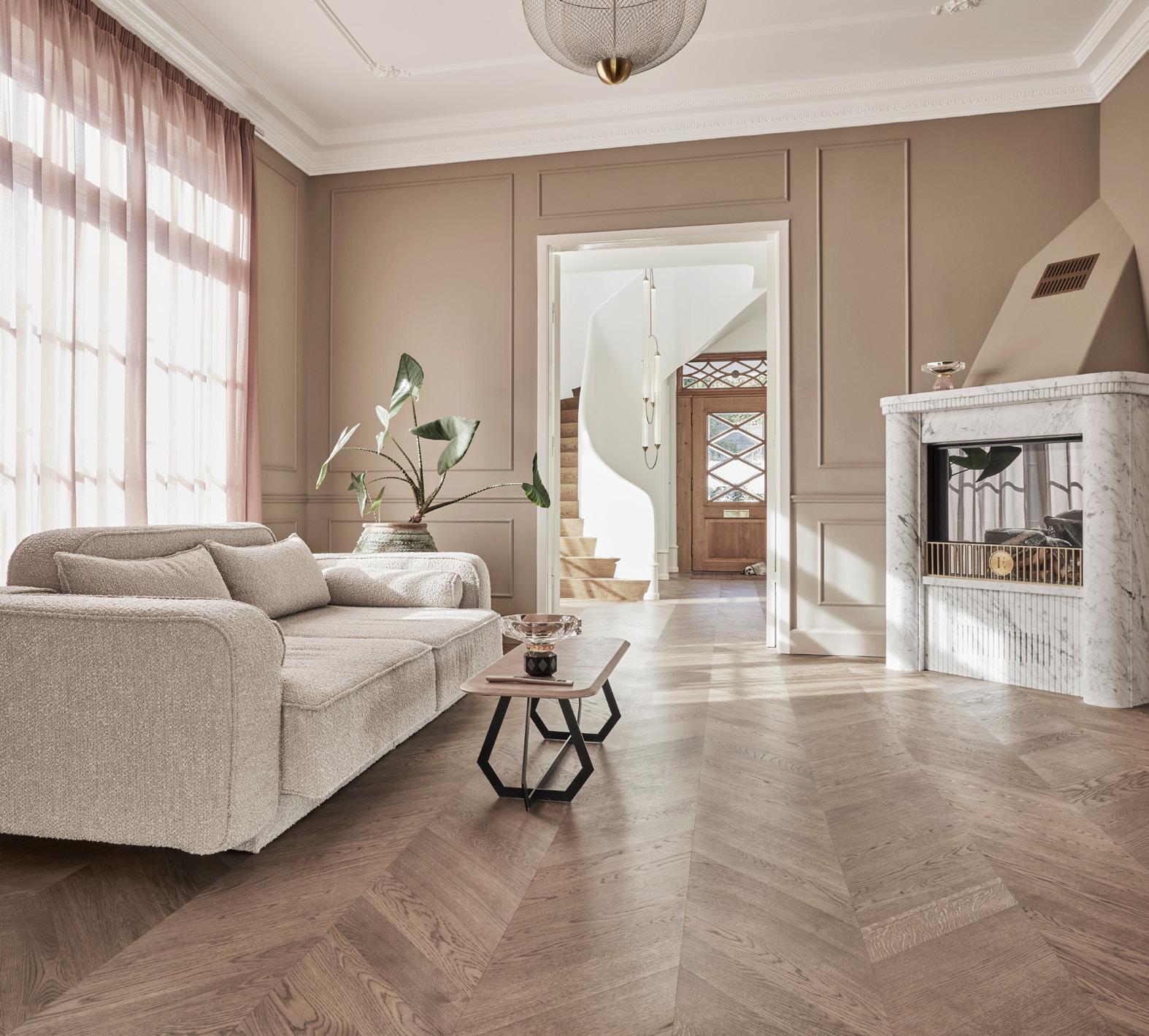 Bag produktionen står håndværkere, der kender træet og forstår dets temperament. Uanset om egetræet formes som brede, tidløse planker, klassisk sildeben eller elegant chevron, begynder hvert gulv med et unikt afsæt. Her arbejdes med naturens egne virkemidler; røg, der trænger ind i træets cellestruktur og fremhæver naturens variationer, olier, der skaber lyse nordiske nuancer eller dybe mørke toner, og varmebehandling, der øger modstandsdygtighed og formstabilitet.