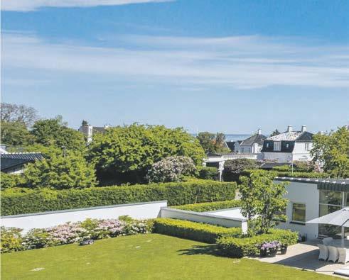 udgang til terrasse. Stuen er delt af en pejs, som kan nydes fra begge stuer. Man oplever et smukt lysindfald, fordi rummet oplyses af solen fra begge sider. I alt 174 kvm indflytningsklar bolig i gedigen kvalitet. Grunden på 700 kvm er solrig, og her finder man en vestvendt have med terrasse, som ligger i forlængelse af køkkenet, samt en stor østvendt have med to terrasser.