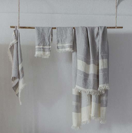 Smukt throw af belgisk hør i flotte afstemte farver. Brug det i din indretning på badeværelset eller som