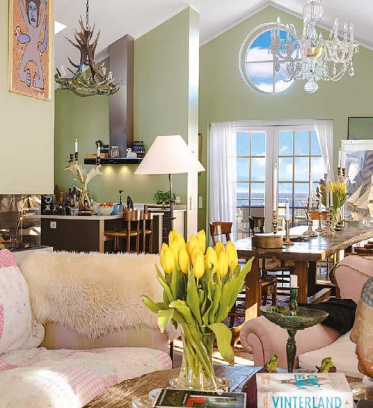 1.salen er indrettet som en imponerende stor kombineret opholds- og spisestue/alrum med loft til kip, og med eksklusivt åbent køkken i forlængelse af spiseafdelingen med udsigt over Øresund. Der er gaspejs og udgang til 2 store terrasser på 17 m² henholdsvis mod øst med udsigt til Øresund og mod vest med sen aftensol og kig til trækronerne i Dyrehaven. Et fantastisk rum, med en særlig atmosfære og unik oplevelse af lys og udsigt.