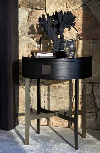 Neo er en af kollektionens nye tilføjelser denne sæson - et rundt natbord med en lille skuffe med messinghåndtag. Du kan vælge mellem sort eller hvidpigmenteret fineret eg.