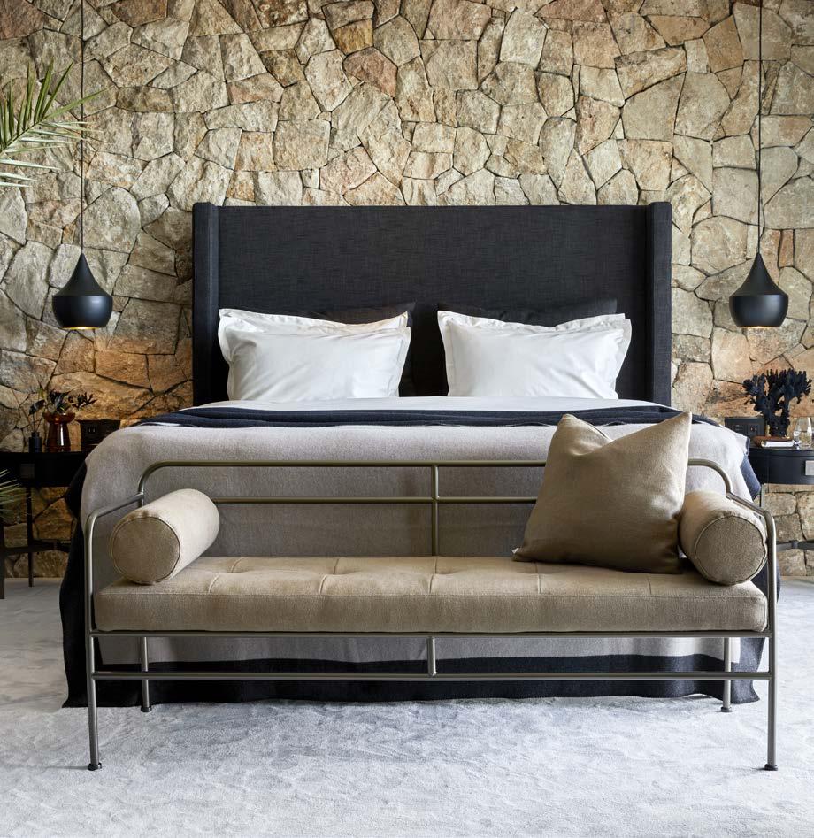 Den nye Lloyd bænk er en smuk tilføjelse til indretningen, udført med en elegant stålramme i bronze farve. Sædepuden og de to medfølgende runde puder kan tilpasses med tekstil efter eget ønske.