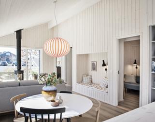 ”Træ er et fascinerende materiale, som gør boligen levende. Det er særlig smukt, når du lader forskellige overflader spille op mod hinanden. På den måde får du et personligt miks og udtryk. Understreg eventuelt naturens noter med materialer af sten, kork og drivtømmer –måske endda egne fund fra stranden.” Den stilsikre rådgiver er grundlæggende meget tro mod det nordiske udtryk.