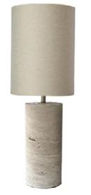 Lampefod i travertin Lampefod i Travertin. Lampefoden har et rustikt udtryk og måler 29 cm i højden og 13 cm i diameteren. Vi anbefaler en lampeskærm som måler 25x30cm