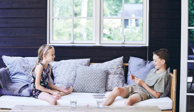 Det er populært med store vinduer, der inviterer solen og himlen indenfor. Men husk, at det også bliver hedt på en skøn sommerdag. Derfor er det klogt at tilføje skodder, gardiner eller udhæng alt efter din stil.