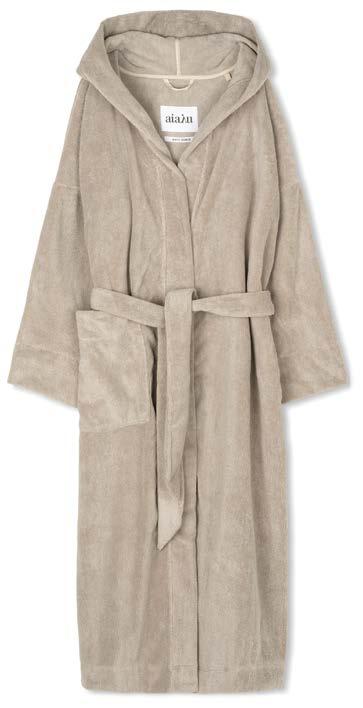 100% økologisk bomuldsterry Svøb dig i vores bløde HOODED TERRY BATHROBE med behagelig tyngde og elegant tekstur. Klassisk langt snit med dyb forlomme, justérbart taljebælte og manchetter på ærmerne. Set på aiayu.com Pris kr. 1.995,-