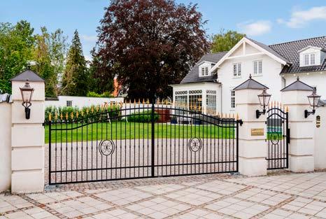 og over 40 år gamle blåregn. Garagen på 200 etagemeter er et kapitel, som selv Grev Knuth ikke en gang kunne drømme om, for herinde er der teknologier, som ikke fandtes på grevens tid. Her er plads til 4-5 biler, værksted m.m.. I kælderen er her også højt til loftet med alt fra den unikke 20-personersbiograf til komplet træningscenter, køkken og badeværelse. Alle materialer er valgt på øverste hylde og med respekt for originalitet og æstetik. Grunden er en park på 3.796 m2 med komplet overvågning, avanceret alarmsystem. Her er alt nyanlagt.