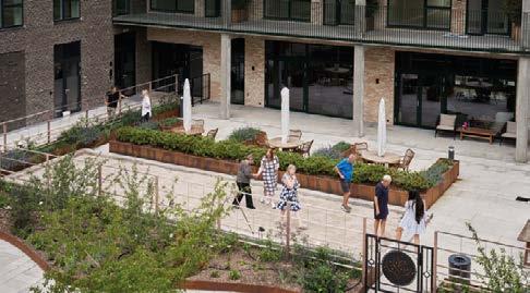 Alle boliger har privat zone/uderum lige ved hoveddøren, samt et fantastisk kig ned over det spektakulære gårdmiljø