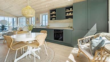 eller et spil bordtennis på en gråvejrsdag. Fabelagtigt og luksuriøst, ja vist, men efter devisen, vi er bare levende, livsnydende mennesker, der holder af smukt design. Bag cedertræsfacaden og de hvide sprossevinduer er husets indretning inspireret af det uprætentiøse, mindre hotel Ett Hem i Stockholm designet af Ilse Crawford. Egen går igen på gulvene, der alle har gulvvarme, gennem de specialfremstillede indvendige døre, og lander i køkkenalrummet i lyst røget egetræ og med ølands sten på alle bordplader. Inde som ude.