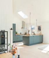 Fra husets elegante og stilrene køkken er der udgang til stort hyggeligt loungeområde.