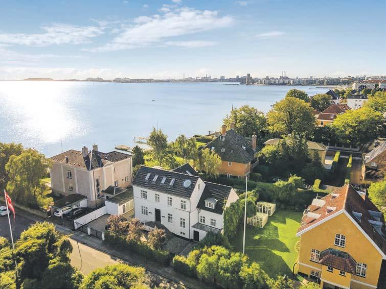 se med panoramaudsigt over vandet. 1. salen rummer flere rummelige værelser, hvoraf to har udgang til en sydvendt terrasse. Den store kælder byder på mange muligheder, og under terrassen finder du tre garager. Alt dette på en skøn grund på 1.359 kvm. Området ved Skovshoved er de seneste år steget i popularitet med sin nærhed til den nu større havn med havbad, Halgodt og hyggelige små gader og stræder.