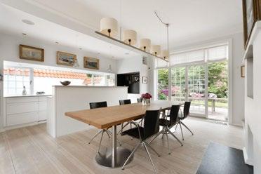 på 136 m² med egen indgang. Indretningen er lys og indbydende med stort køkken-alrum, stuer en suite, 5-6 værelser, walk-in closet og flere badeværelser. Overalt er der anvendt eksklusive materialer, herunder Dinesen plankegulve, specialfremstillede vinduer og designløsninger i særklasse. Den 1.295 m² store grund er helt privat med smukt anlagt have og terrasserne, hvor man kan nyde solen hele dagen.