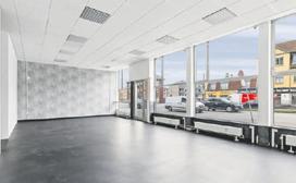 Ejendommen består af et stort showroom på ca. 750 m2, hvor der er højt til loftet og suveræne lysforhold.