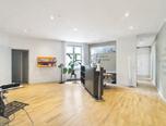 På første sal finder man et rummeligt åbent kontorlandskab, mødelokaler, en moderne kantine i elegant New York-stil samt badeog omklædningsfaciliteter.