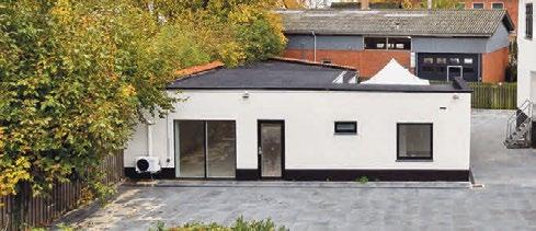 Bygningen er opført med et mix af store glaspartier, sorte facadeplader og adt tag.
