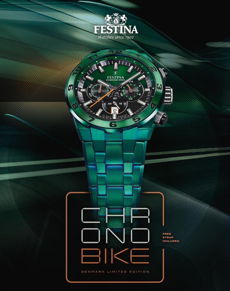 Kasse og lænke er skiftevist poleret og satinbørstet, så du får et fint spil i lyset. Der er selvfølgelig safirglas på toppen, og så kan du vælge mellem en sort, blå eller grøn skive.