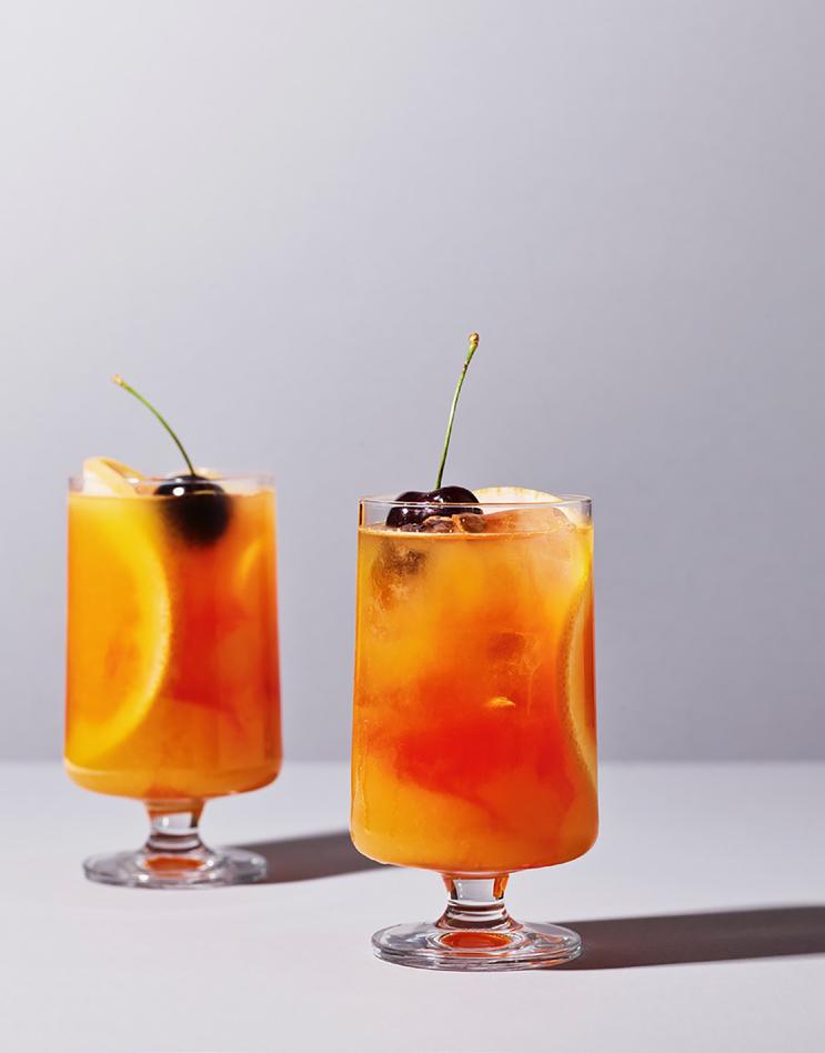 Kom Pimm’s, citronsaft og sukkersirup op i glasset. Tilføj isterninger, og rør godt rundt. Top med danskvand og bitters, og pynt med et par skiver eller strimmler agurk, lidt mynte, citronskiver og jordbær.