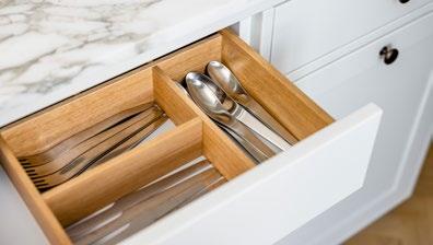 Stram symmetri bag designet Copenhagen fås i eg, røget eg, valnød og hvid ask og kan både monteres væghængt eller på benstel i børstet rustfrit stål – uanset om elementerne er fritstående eller står op ad en væg. Du kan også vælge benstel i massivt træ, der fuldender billedet af din foretrukne træsort – eller du kan vælge den klassiske kombination på sokkel eller med sokkelskuffer. De massive træskuffer har en smuk frem toning, hvor detaljer som de fingertappede samlinger understreger, at der er tale om feinschmeckeri. Designet er gennemtænkt, så du opnår en stram symmetri og et formfuldendt helhedsindtryk, uanset hvilken kombination af skuffer du vælger. Har du eksempelvis to lave skuffer ved siden af en høj skuffe, matcher fingertapsamlingerne perfekt. Skufferne fås i øvrigt med ekstra højde, så der også er plads til de store glas, kander og dåser – en praktisk feature i dagligdagen i et køkken, hvor både design og funktionalitet vægtes tungt.