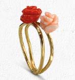 Saml en buket roser til din udkårne med disse ringe fra Ghita Ring & Katrine Svenningsen i 18 kt guld med enten lyserøde eller røde roser udskåret af ægte koral. Pris pr. stk. 1.950 kr.
