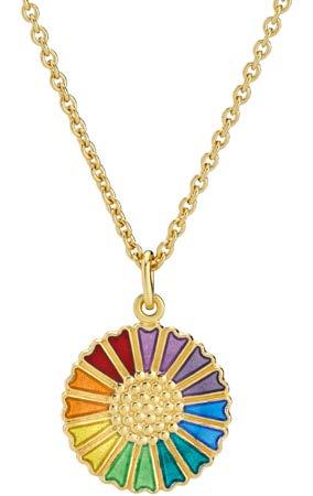 Den emaljerede marguerit er og bliver en tidløs smykkeklassiker, uanset om man er 14 eller 74. I år har Lund Copenhagen introduceret nye, farverige varianter til kollektionen, bl.a. dette fine vedhæng i forgyldt sterlingsølv med farvet emalje