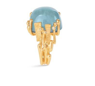 På denne årstid skyder blomsterne op overalt –også hos Ole Lynggaard Copenhagen med denne Blooming-ring i 18 kt rødguld med rød koral, akvamarin samt pavéblad med 25 brillanter (ialt 0,10 ct).