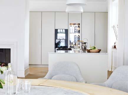 Et køkken der matcher arkitekturen Hall, badeværelser og garderober er indrettet i samme nordiske stil, så der opstår en arkitektonisk helhed igennem hele palævillaen. Enkelheden i køkkenets design gør det tidløst og betyder, at det passer smukt ind i både herskabslejligheder, patriciervillaer og nybyggerier.