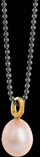 Halskæde fra Ghita Ring & Katrine Svenningsen med rustikt 14 kt guldøsken, oxideret sølvkæde (8o cm) og rosa ferskvandsperle.