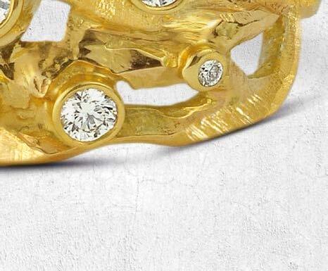 Et godt eksempel er Pernilles yndlingsarmbånd, som er lavet ud af nogle arvesmykker. Da de ikke matchede hendes stil, fik hun smeltet dem om og lavet et helt nyt guldsmykke med fire brillantbesatte bogstaver, der dagligt minder hende om navnene på hendes fire børn. “Det er faktisk et område i vækst, for vi møder mange kvinder, der arver gamle smykker, de ikke ved, hvad der skal stille op med. Her på værkstedet kan vi omforme dem, så affektionsværdien lever videre i helt nye smykker”, siger Pernille.