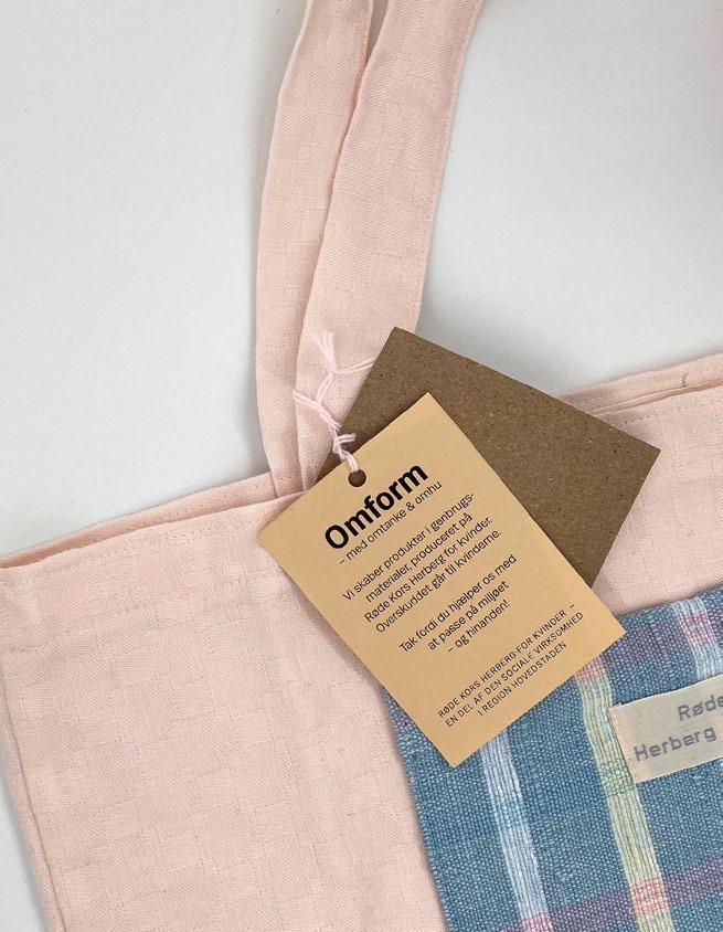 Omform er navnet på det kreative arbejdsfællesskab, som Herberg for Kvinder oprettede efter ønske fra brugerne. Indkøbsnet fremstillet af genbrugsmaterialer. Pris 75 kr. Overskuddet går til Dansk Røde Kors Herberg for Kvinder.