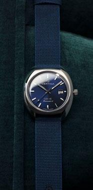Dette nye Certina DS-2 kan gå til både hverdag, fest og sport. Den 40 mm store stålkasse er vandtæt til 200 meter, og den blå stofrem er lavet af genbrugsplast, der er samlet op i ver denshavene (#tide ocean material®).