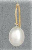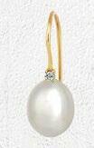 Ørehænger fra Lund Copenhagen i 14 kt guld med ferskvandsperle og diamant. Pris 6.000 kr. pr. sæt.