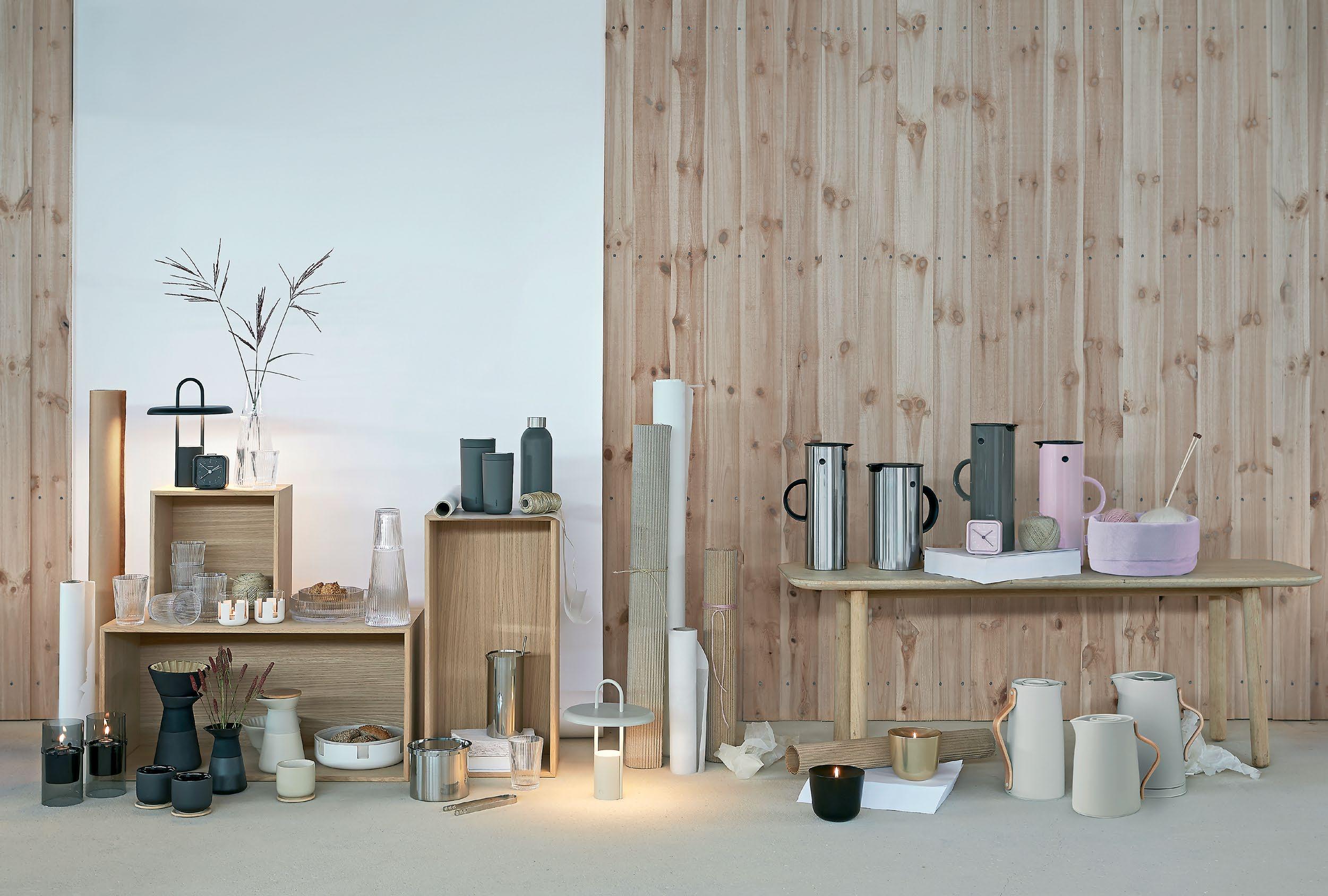 En af de senere års store Stelton-succeser er kollektionen Emma, der er designet af HolmbäckNordentoft og glimrer med sine rene linjer. Kombinationen af stentøj og la