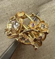 og ikke mindst delvist opstået på baggrund af håndtegnede akvarel arbejdstegninger, det sidste en kunst der nærmest er uddød i smykkefaget.