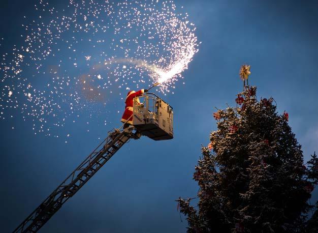 Et af de sikreste tegn på, at julen nærmer sig, er når det store juletræ på Rådhuspladsen tændes. Det sker traditionen tro på den første søndag i advent, og i år er det den 28. november. Det hele starter klokken 15.00, når julemanden og hans familie går afsted fra Nyhavn i optog mod Rådhuspladsen ledsaget af nye og gamle brandkøretøjer fra Hovedstadens Beredskab. De ankommer til Rådhuspladsen klokken 15.30, hvorefter julen synges ind til musik leveret af Københavns Kommunes Skoleorkester. Efter rådhusklokkerne kl. 16 holder Københavns overborgmester, Lars Weiss, en kort tale – og så tændes træet! Bæredygtig rødgran fra Gribskov Som altid kommer juletræet fra Danmarks fjerdestørste skov, Gribskov i Nordsjælland. Træet er en bæredygtig rødgran, der typisk måler omkring 20 meter og vejer ca. 4 tons. Det bliver efterfølgende pyntet med 800 LED-lys og masser af julehjerter fra Børnenes Kontor. Dermed holdes flere traditioner i hævd, da Børnenes Kontor også i år samler ind til at kunne give udsatte børn en god jul også. Frem til 24. december vil der således være en glaskiste til donationer ved siden