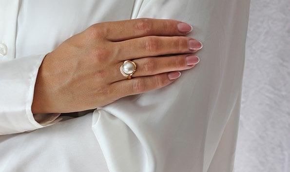 Dôme de Perles ring med hvid mabeperle og 0,08 ct. TW / VS diamanter Perlens bløde glød og organiske form gør den til et smykke, der passer til både hverdagens enkle øjeblikke og festlige anledninger.
