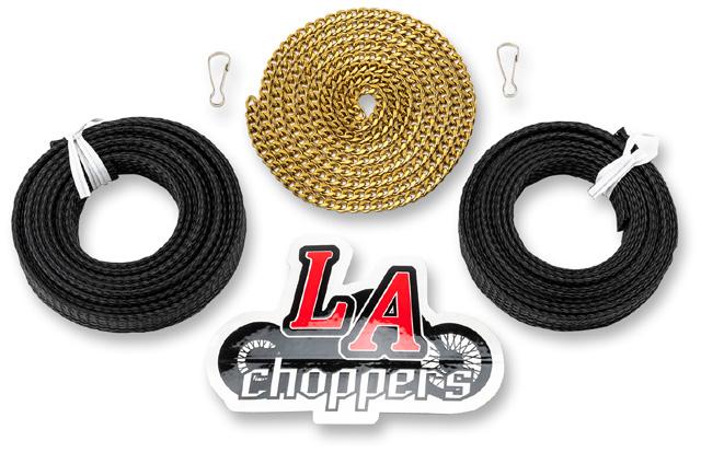 94 PARTS MAGAZINE ★ JANUARY 2023 PARTS DEPARTMENT LEO VINCE LV-10 FULL EXHAUST SYSTEMS FOR HONDA GROM 22 » Header pipe is made from AISI 204 stainless steel » TIG-welded » Design is 1:2 high mount system (header pipe w/ dual high-mount mufflers) » High heat-resistant thermal muffler packing » Stainless steel muffler bodies with stainless or matte black stainless finish » Carbon fiber mufflers are double-layer pre-preg carbon fiber muffler bodies » Carbon fiber muffler brackets » End caps have a sandblasted finish and stainless steel mesh inserts for the GP look » Must remove stock rear indicators to install DESCRIPTION PART # SUG. RETAIL Stainless/stainless/stainless 1810-3091 $499.95 Stainless/black stainless/black stainless 1810-3092 499.95 Stainless/carbon fiber/stainless 1810-3093 569.95 NOTE: NOT LEGAL FOR SALE OR USE IN CALIFORNIA ON POLLUTION CONTROLLED MOTOR VEHICLES. LA CHOPPERS HERO EASY HANDLEBAR WIRING INSTALL KIT AND REFILL KIT » Makes internal handlebar wiring of handlebars much easier » Feeds wires all the way through wire sheathing » Pulls wired sheathing through the handlebar using included chain » Includes chain, wire sheathing and clasp » Refill kit available separately DESCRIPTION PART # SUG. RETAIL Wiring install kit 3850-0443 $32.95 Refill kit 3850-0445 21.95 STAINLESS/STAINLESS/STAINLESS STAINLESS/BLACK STAINLESS/BLACK STAINLESS STAINLESS/CARBON FIBER/STAINLESS REFILL KIT WIRING INSTALL KIT