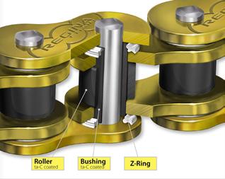 per side of the ring for added protection and lubrication. The critical area of the chain is well-guarded from sand and dirt, and lubricant stays exactly where it’s supposed to, even under extreme riding conditions.