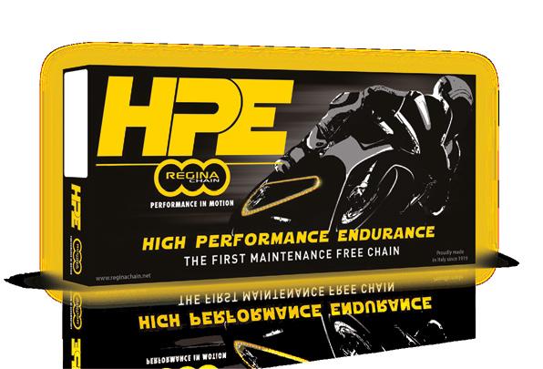 Then along comes Regina Chain’s unique, maintenancefree HPE (High Performance Endurance) Z-ring chain. With the HPE, your customers can say goodbye to a big step in regular motorcycle maintenance.