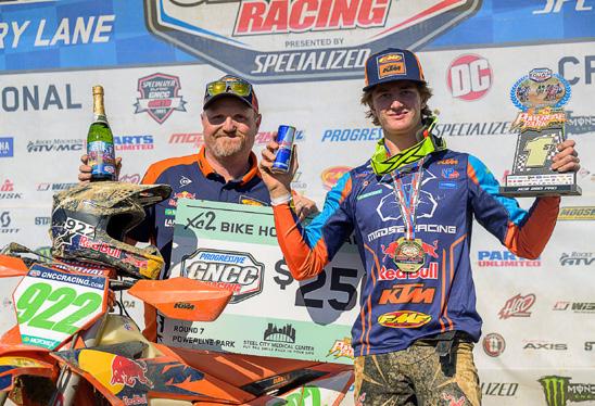 Out West, Mason Semmens of the FMF RPM KTM team is locked in battle for the Pro II class championship in NGPC. The